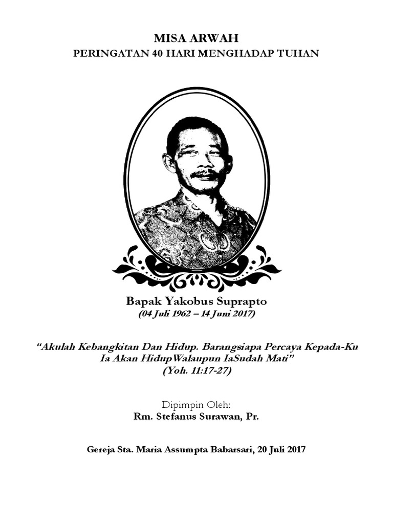 Misa arwah mengenang 40 hari berpulang kerumah bapa di surga isteri, mama, eyang putri chatarina rianawati harnantoko salam kasih dalam yes. Seringkali fenomena misa arwah ini lebih dikenal juga dengan istilah latin missa requiem (requies = istirahat). Mereka adalah pastor william chang ofmcap (vikjen. Bapak h.j ponidjansabtu 20 maret 2021 pukul 11.00 wibgereja santo petrus dan paulusparoki minomartani. Meskipun acara semacam ini tidak wajib namun sebagian orang di indonesia masih melakukannya.