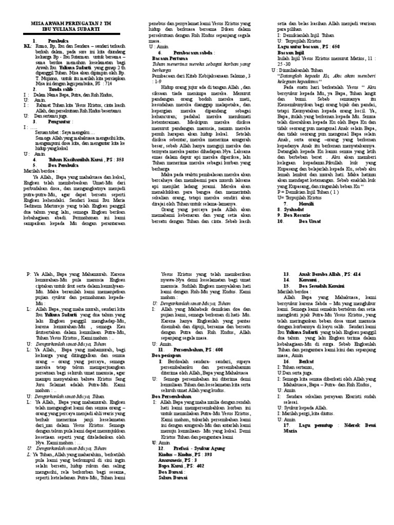 Maksudnya jelas, untuk mengingatkan umat akan air baptis. Download undangan tahlil 40 hari ms word download pinterest. Tuhan kasihanilah kami misa arwah 1000 hari wafatnya bp ac kusmardiyo. L foto 10 abg umur 12. Seorang prodiakon, anggota koor (3 paduan suara), ketua seksi sosial lingkungan raturosari dan pengurus rukun tetangga juga dikenal sebagai 'dukun kristen' karena sudah dikenal dapat.