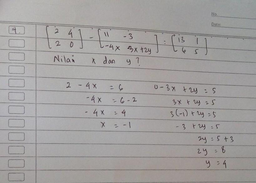 Informasi contoh soal administrasi umum kelas 10 beserta jawabannya. Matriks nol, matriks yang seluruh elemennya adalah bilangan nol. Soal matriks kelas 11 sma/ma 2021 dan kunci jawabannya contoh soal. Contoh soal matriks kelas 11 2019 dan kunci jawabannya. 2x 3 4x 2 18 dibagi x 3. Matriks baris, matriks yang hanya memiliki satu baris, berordo 1 x j. Berikan contoh contoh soal matriks dan jawaban nya brainly co id. Contoh soal kesamaan dua matriks dan cara penyelesainnya brainly co id. Contoh soal invers matriks ordo 2x2 dan jawabannya brainly. Jika ada sedang mencari contoh soal administrasi umum kelas 10 dan jawabannya. Soal matematika kelas 10 by guru . Nilai x di antara 0° dan 360° yang memenuhi persamaan √3 cos x + sin x = √2 adalah. √3 cos x + sin x = √2.